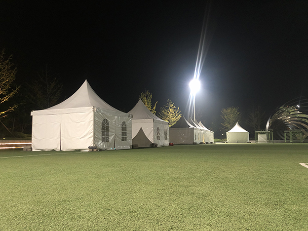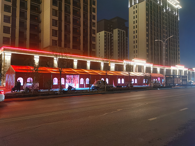 以前,无论是举办展览会还是婚礼宴会、新品招商等活动一般都会选择室内酒店或展馆,然而遇到一些规模大的活动,可能常规室内展馆会难以满足,户外展览帐篷的出现很好的解决了这一难题。这是一款跨度为30米的户外展览篷房,可容纳上千人的篷房。展览篷房有多种造型可供选择,尤其是透明篷房或玻璃幕墙篷房尤为独特,在户外多种活动中都能够脱颖而出,受到众多客户的青睐。最常见的展览帐篷以人字型为主,篷房顶部采用全透明篷布,围布可以采用透明布也可以选择玻璃幕墙,搭配精致的布幔等内饰,可以让透明展览帐篷更显高端大气,更加吸引眼球,从而营造出更梦幻般的氛围。从环保角度来说,户外展览帐篷很环保,在天气晴好的白天不需要照明就可以满足采光需求,环保又节能。